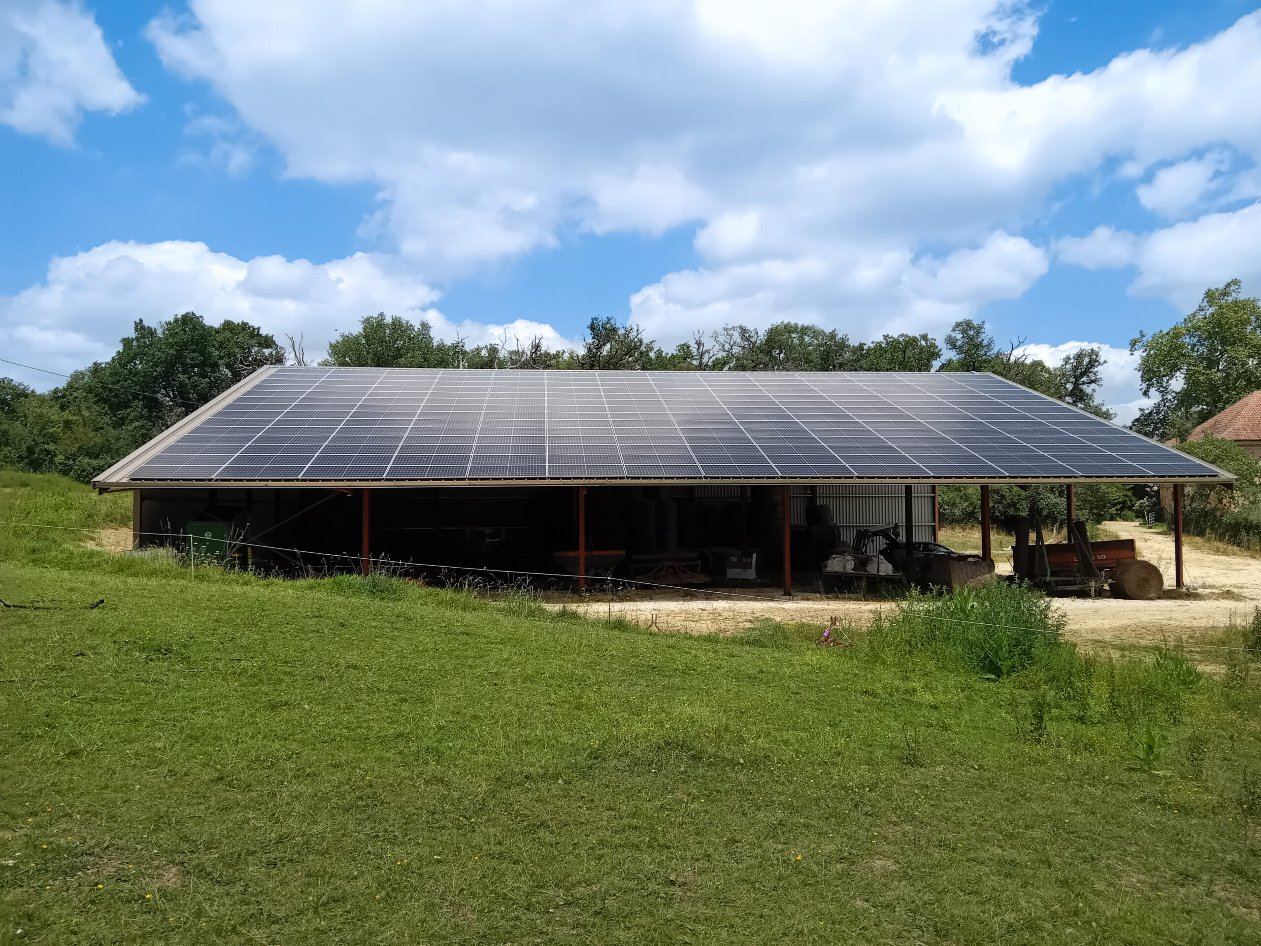Le hangar agricole permet d'exploiter la surface disponible pour produire une énergie propre et durable, réduisant ainsi les coûts électriques et améliorant l'efficacité de l'exploitation agricole.