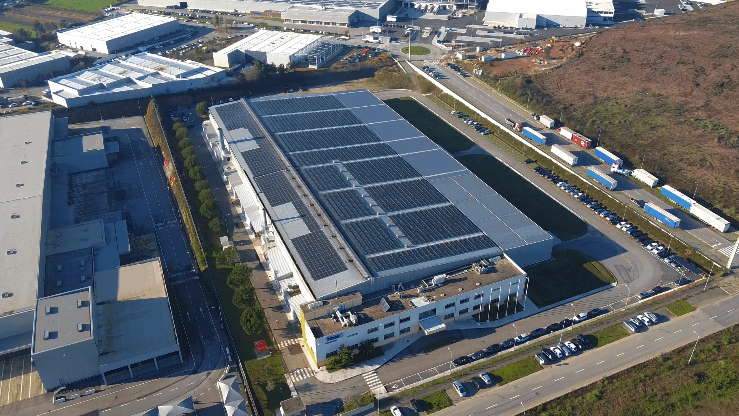 Tesco took a decisive step toward carbon neutrality with the installation of 2,626 photovoltaic modules on the rooftop of its industrial unit. This project, developed in two phases by Prosolia Energy, reflects Tesco's confidence in our technical expertise and know-how.